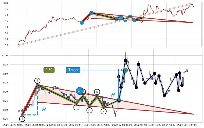 ➢ 最小中继整理涨幅→𝐇: 0.8300 (𝐇楔型旗杆的长度:楔型起点→顶点)