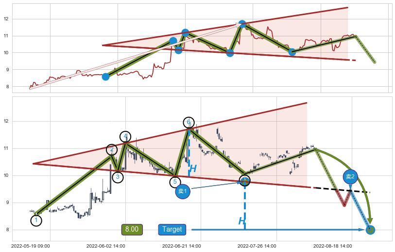 ➣ 【仅预测突破】最后价格:10.95与预测突破价格:9.76→【空间临近】后续最小【反转】第一目标价格→(08-22:14: 8.00 )