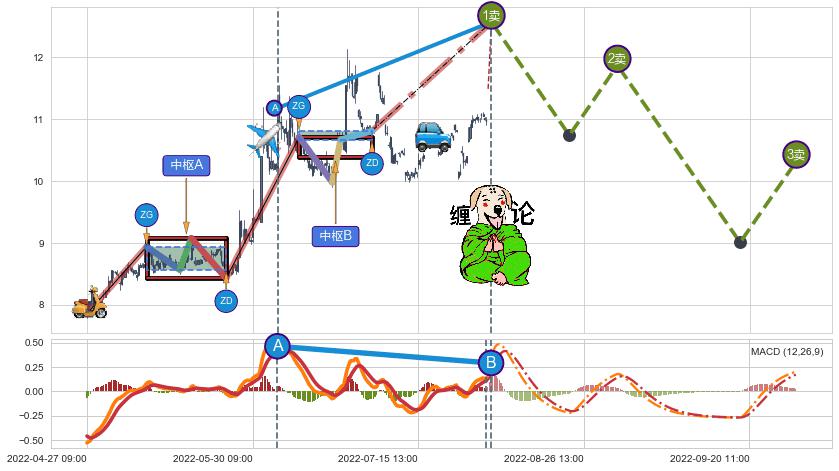 ➢ 缠论价格❶卖比A点高 ⤴,【MACD】指标B点比A点低 ⤵️