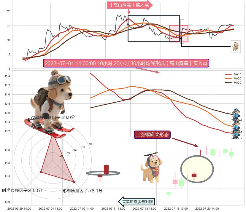 从2022-04-27 09:00至2022-07-04 14:00,共包含184个小时,阶段股价上涨34.10%,阶段股价变动位移路程比: 1 : 6,上涨趋势角度: 23.1