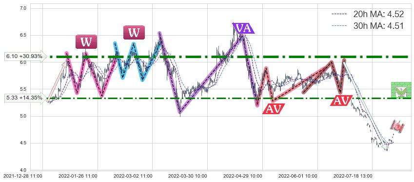 ♘ 阻力价格位5.33,可信任强度67.69%,距离最后交易2022-08-12 14:00形成的收盘价格4.66相差 +14.35%