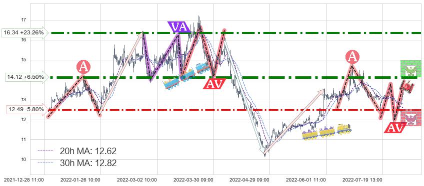 ♞ 20小时均线:12.62,30小时均线:12.82→ 快线<慢线