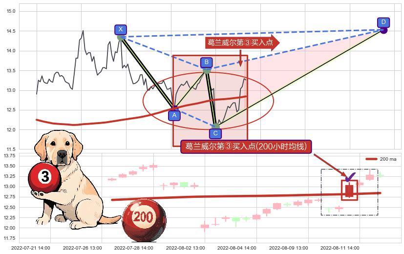 ➣ D点拟合预测价格14.53,距离最后交易收盘价格13.26相差 +9.59%
