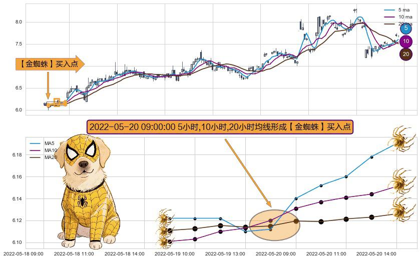 ⚀ 2022-05-20 09:00:00小时显现 5小时-10小时-20小时均线 【金蜘蛛】买入点 看多信号,后市看涨,买入