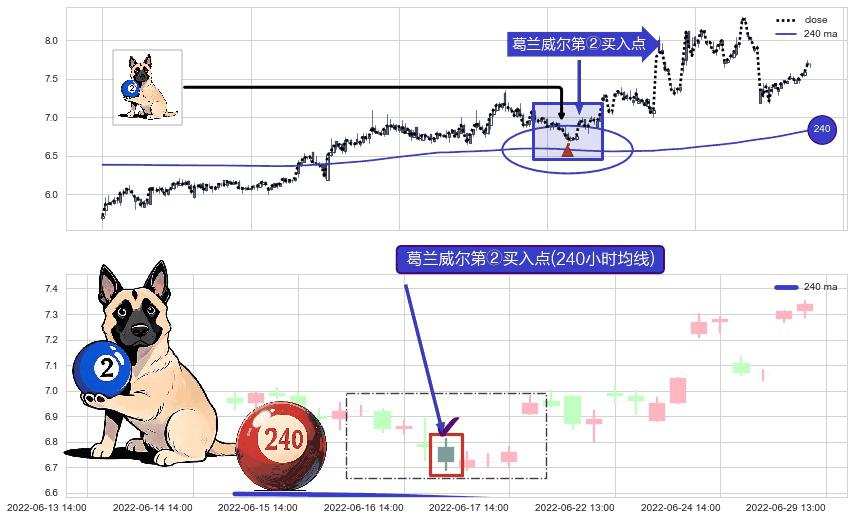 ⚀ 2022-06-17 10:00:00-小时显现 葛兰威尔均线 240小时均线 第②买入点 上升趋势的中继信号,后市看涨,买进信号