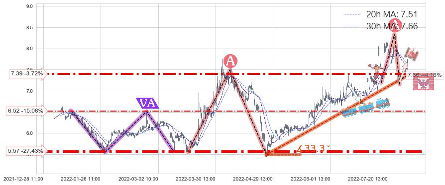 ♞ 20小时均线:7.51,30小时均线:7.66→ 快线<慢线