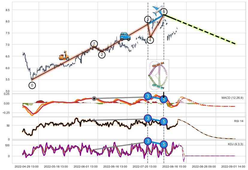 ➣ 1,3,5驱动浪MACD, RSI, KDJ走势都出现【常规背离】反转信号增强