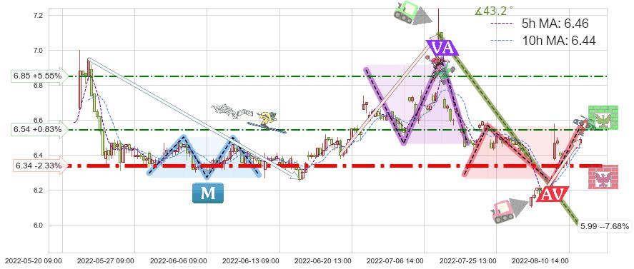 ♘ 阻力价格位6.54,可信任强度48.26%,距离最后交易2022-08-12 14:00形成的收盘价格6.49相差 +0.83%