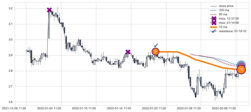 下跌趋势12-28 11:00-02-08 13:00,均线75确认关键阻力1处