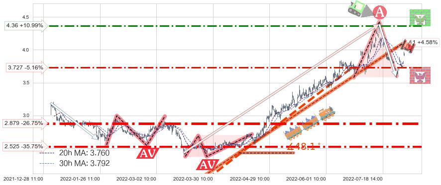 ♘ 支撑价格位3.727,可信任强度56.35%,距离最后交易2022-08-12 14:00形成的收盘价格3.930相差 -5.16%