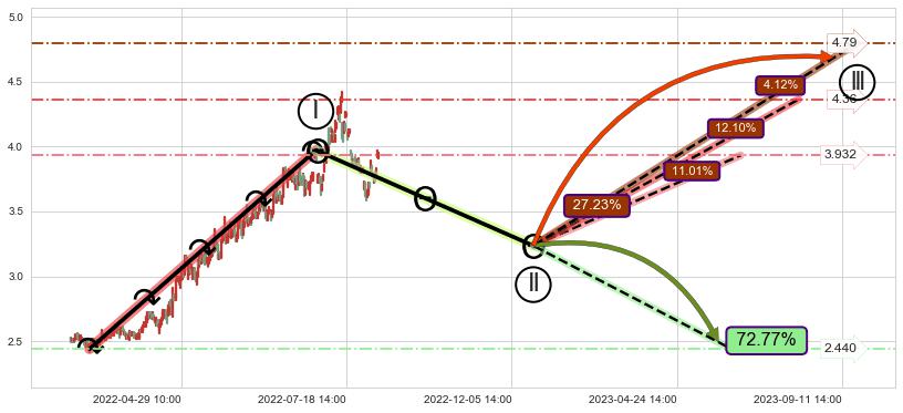 ➢ 循环浪继续向上【最低】位置(06-16:13, 3.932),匹配聚类样本比例40.42%, 可能性概率11.01%