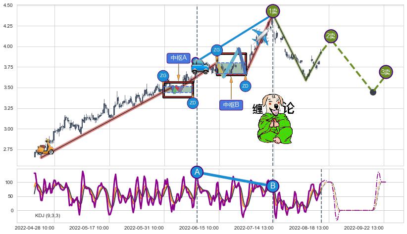 从2022-06-16 09:00至2022-08-12 14:00,共包含90个小时,阶段股价上涨9.16%,阶段股价变动位移路程比: 1 : 10