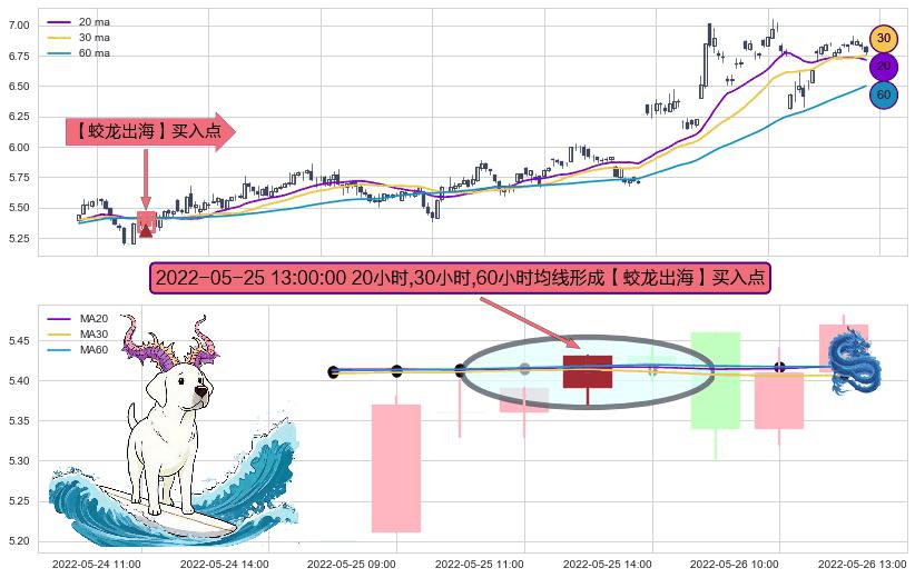 ⚀ 2022-05-25 13:00:00小时显现 20小时-30小时-60小时均线 【蛟龙出海】买入点 看多信号,后市看涨,买入