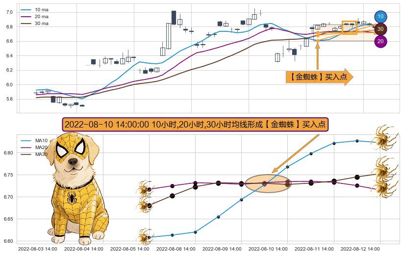 ⚀ 2022-08-10 14:00:00小时显现 10小时-20小时-30小时均线 【金蜘蛛】买入点 看多信号,后市看涨,买入
