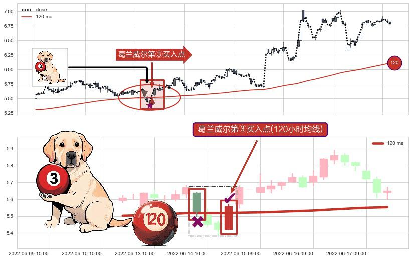 ⚀ 2022-06-14 13:00:00-小时显现 葛兰威尔均线 120小时均线 第③买入点 上升趋势的中继信号,后市看涨,买进信号