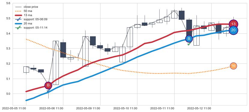 ⚂ 2022-05-25 13:00:00小时突然冒出一根大阳线,一下子顶穿三条均线且收盘价收在各条均线之上