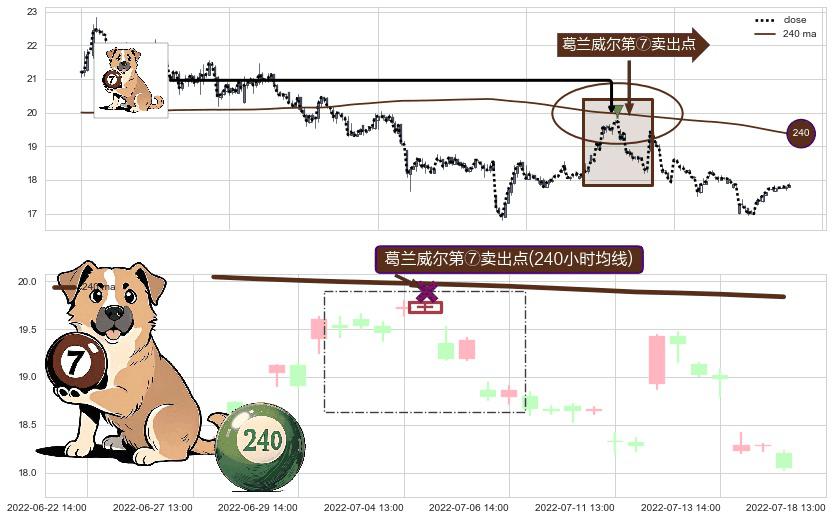 形态多维评估: ⚀ 2022-07-04 14:00:00-小时显现 葛兰威尔均线 240小时均线 第⑦卖出点 下降趋势的中继信号,后市看跌,卖出信号