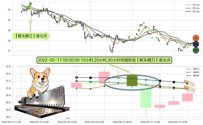 形态多维评估: ⚀ 2022-05-17 09:00:00小时显现 10小时-20小时-30小时均线 【断头铡刀】卖出点 看空信号,后市看跌,卖出