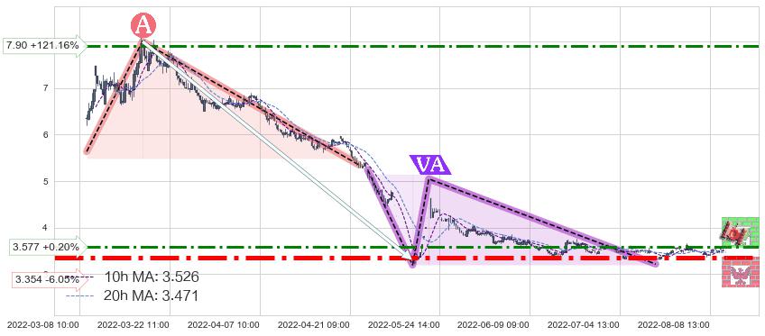 ♘ 阻力价格位3.577,可信任强度67.32%,距离最后交易2022-08-12 14:00形成的收盘价格3.570相差 +0.20%