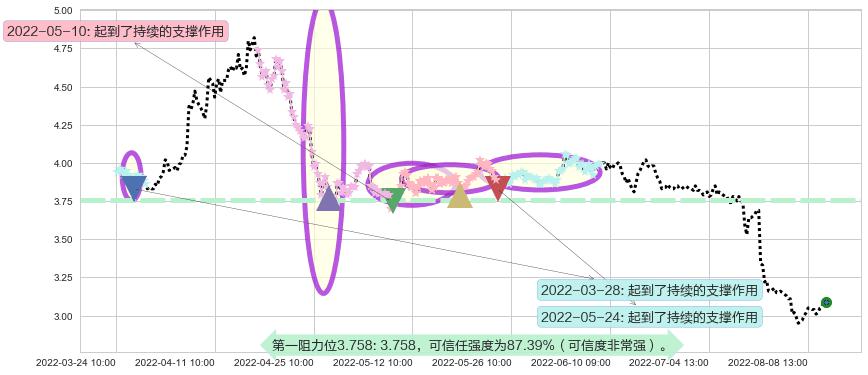 ♘ 阻力价格位3.758,可信任强度87.39%,距离最后交易2022-08-12 14:00形成的收盘价格3.090相差 +21.62%