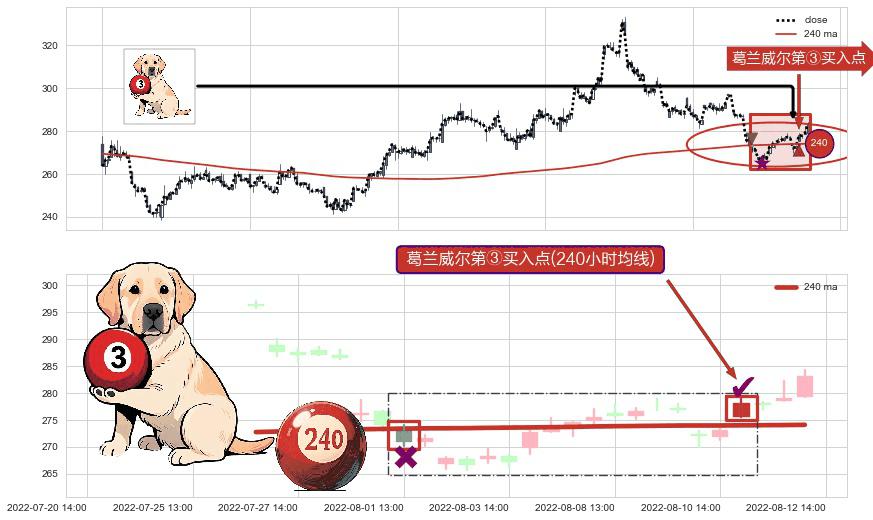 ⚀ 2022-08-11 13:00:00-小时显现 葛兰威尔均线 240小时均线 第③买入点 上升趋势的中继信号,后市看涨,买进信号