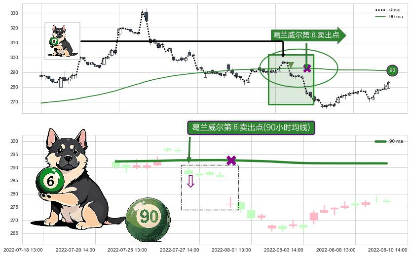 ⚀ 2022-07-27 13:00:00-小时显现 葛兰威尔均线 90小时均线 第⑥卖出点 走势反转见顶信号,后市看跌,卖出信号