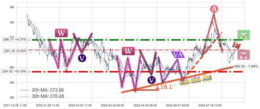 ♞ 20小时均线:273.96,30小时均线:278.48→ 快线<慢线