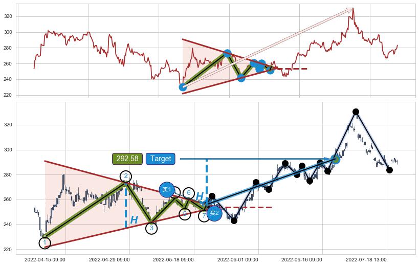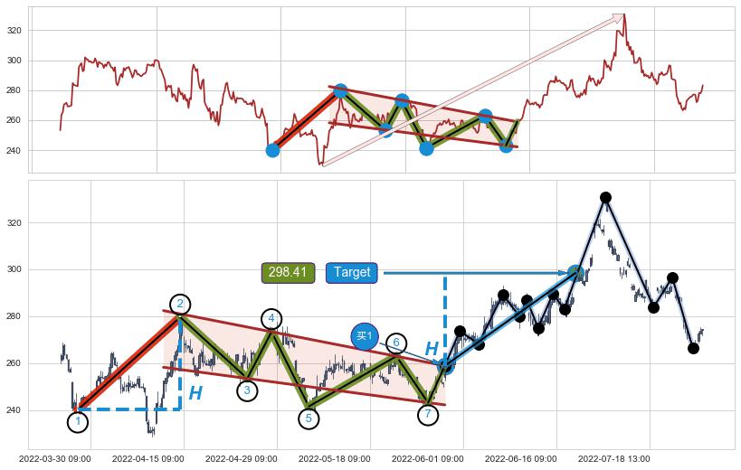 ➣ 最小中继整理涨幅→𝐇: 39.47 (𝐇旗杆的长度:旗杆起点→顶点)