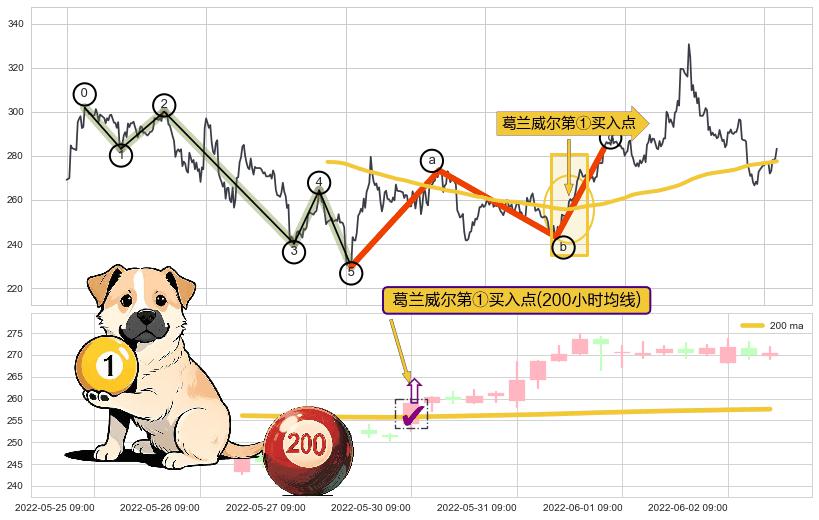 ➣ 收盘价(07-27:14: 287.12 )→回踩→第一根k线高点(07-25:14: 293.93 )