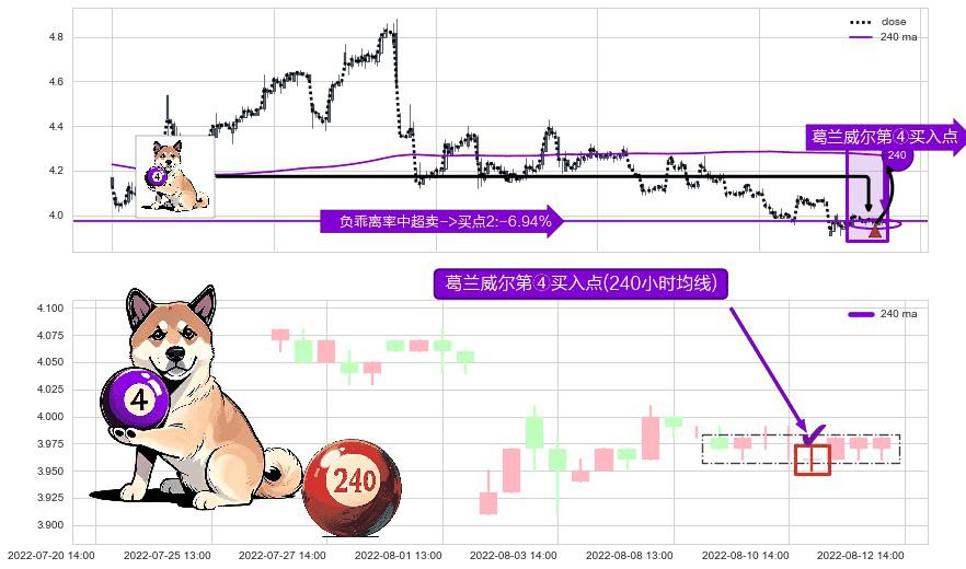 ⚀ 2022-08-11 13:00:00-小时显现 葛兰威尔均线 240小时均线 第④买入点 下降趋势均值回复的短线反弹信号,后市看涨,买进信号
