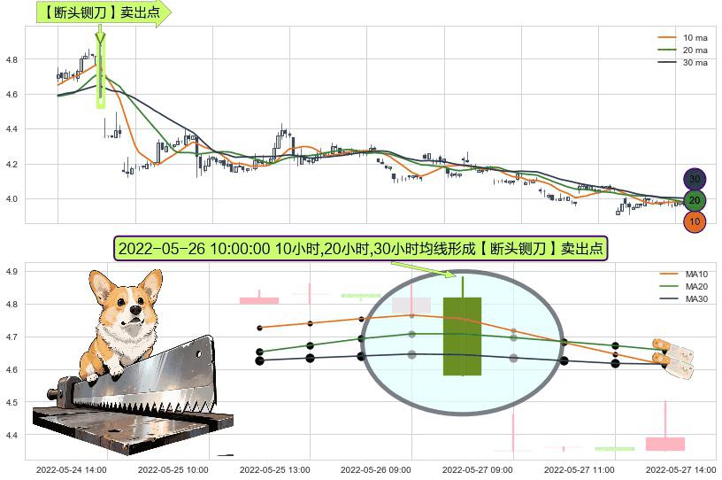 ⚀ 2022-05-26 10:00:00小时显现 10小时-20小时-30小时均线 【断头铡刀】卖出点 看空信号,后市看跌,卖出