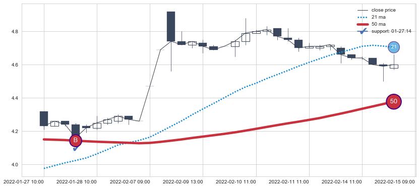 ⚁ MA60和MA90走势平行,且始终保持在短距离内,MA120始终在短中期均线上方,与短中期均线保持一定的距离,微微下行