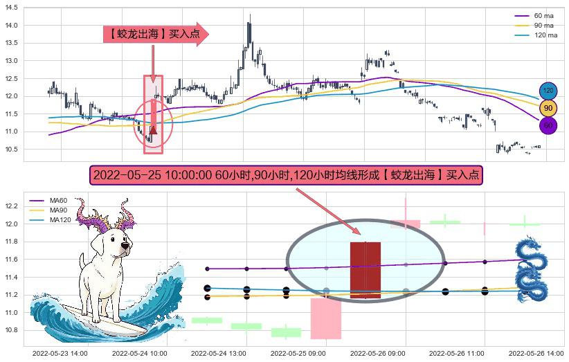 ⚀ 2022-05-25 10:00:00小时显现 60小时-90小时-120小时均线 【蛟龙出海】买入点 看多信号,后市看涨,买入