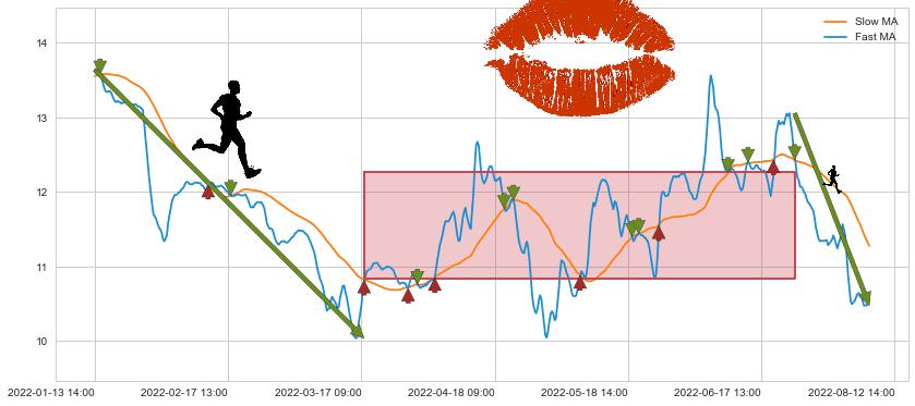 07-05 14:00至08-12 14:00 慢线与快线呈空头排列, 慢线与快线接触少,无缠绕