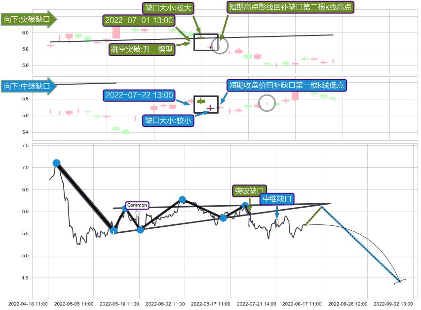 ➢ 2022-07-01 13:00形成:向下跳空【突破】缺口