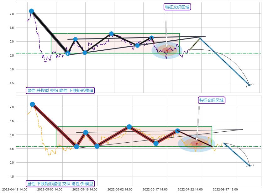 从2022-06-28 14:00至2022-08-04 13:00,共包含54个小时,阶段股价下跌-12.22%,阶段股价变动位移路程比: 1 : 3
