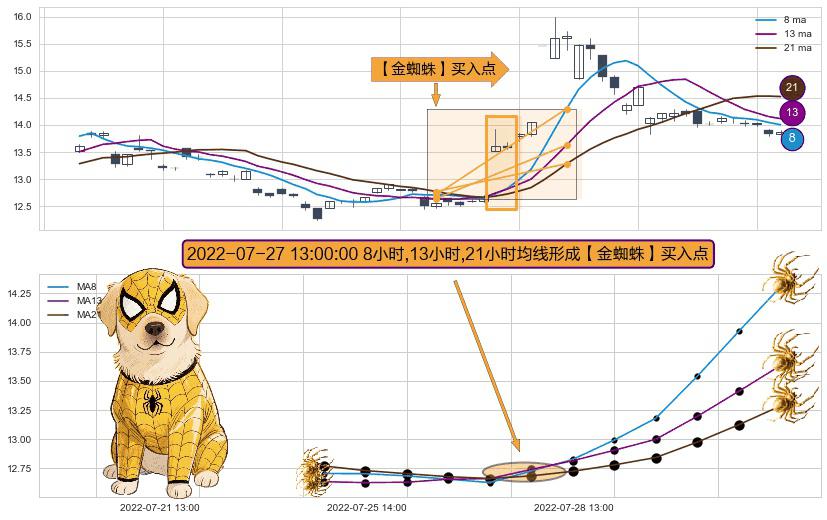 ⚀ 2022-07-27 13:00:00小时显现 8小时-13小时-21小时均线 【金蜘蛛】买入点 看多信号,后市看涨,买入
