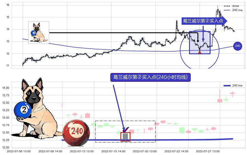 ⚀ 2022-07-15 14:00:00-小时显现 葛兰威尔均线 240小时均线 第②买入点 上升趋势的中继信号,后市看涨,买进信号