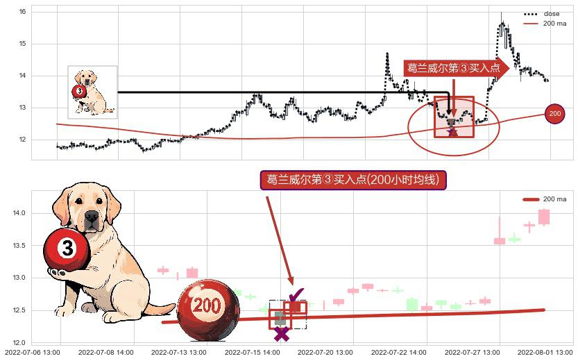 ⚀ 2022-07-18 13:00:00-小时显现 葛兰威尔均线 200小时均线 第③买入点 上升趋势的中继信号,后市看涨,买进信号