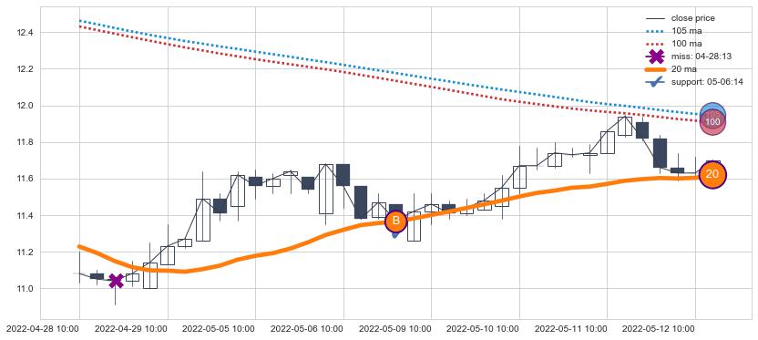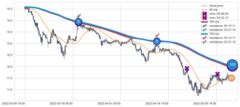 ⚂ 2022-07-15 14:00:00-小时均线向下破位,2022-07-18 13:00:00-小时重新上穿突破均线,均线支撑再次生效