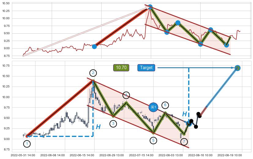 ➢ 支撑位【③⑤⑦】波动逐渐走低,构成【旗形】下平行线