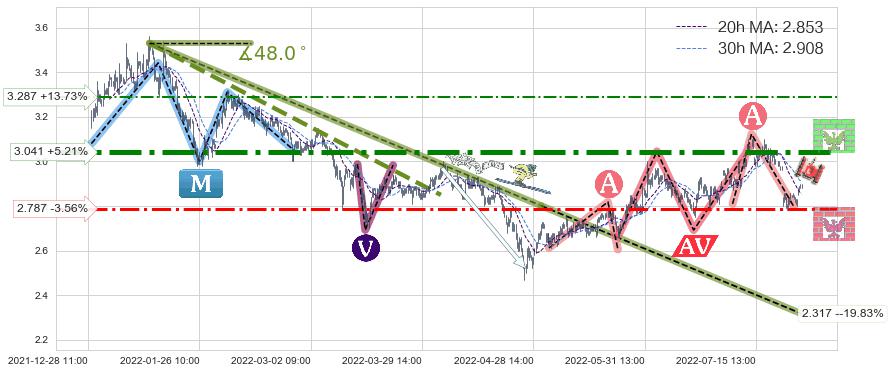 ♘ 阻力价格位3.041,可信任强度92.99%,距离最后交易2022-08-12 14:00形成的收盘价格2.890相差 +5.21%
