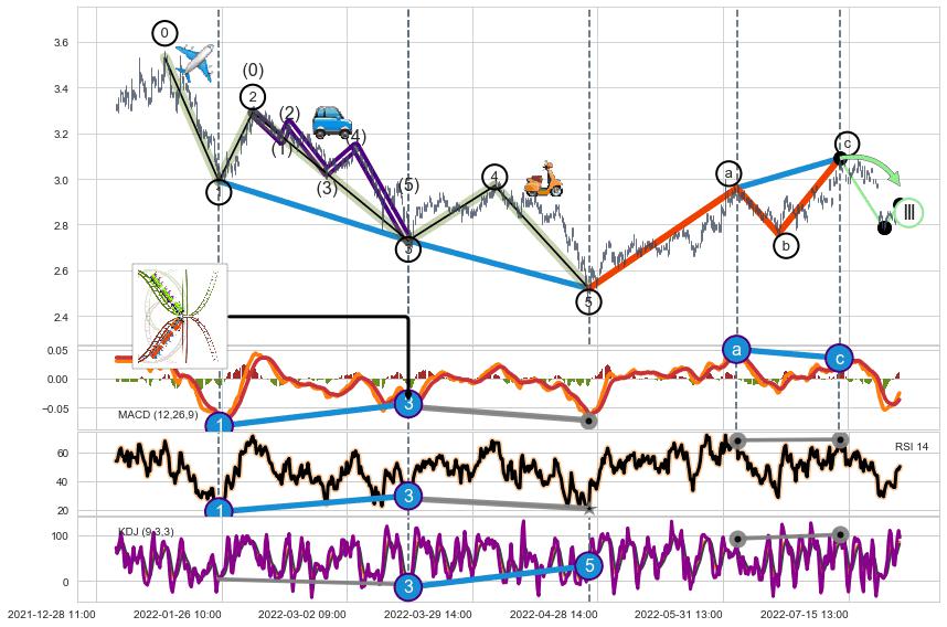 ➣ 1,3,5驱动浪MACD, RSI, KDJ走势都出现【常规背离】反转信号增强