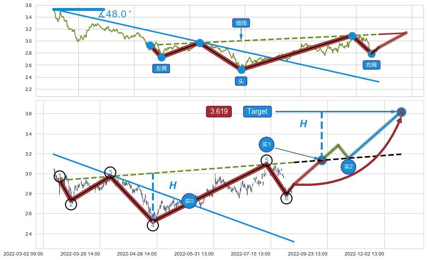 ➣ 最小反转涨幅→𝐇: 0.48261 (头部与颈线垂直距离)