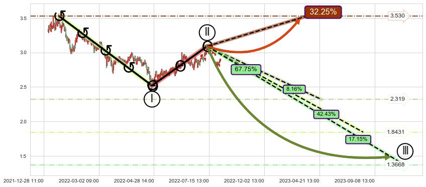 ➢ 【仅预测突破】最后价格:2.890与预测突破价格:3.136→【空间较大】后续最小【反转】第一目标价格→(12-23:13: 3.619 )