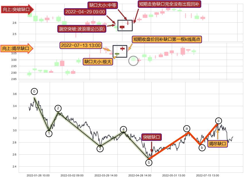 ➢ 2022-07-13 13:00形成:向上跳空【竭尽】缺口