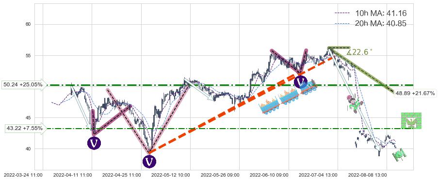 ♘ 阻力价格位50.24,可信任强度58.29%,距离最后交易2022-08-12 14:00形成的收盘价格40.18相差 +25.05%