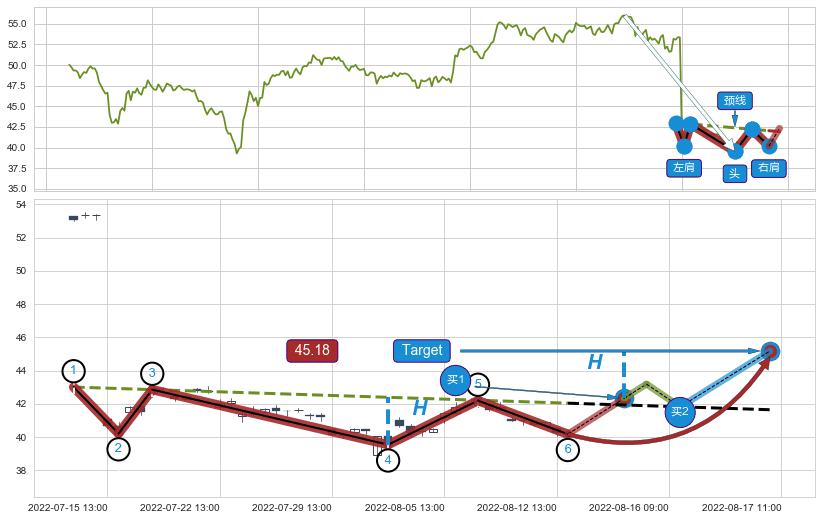 ➢ 收盘价(08-05:14: 41.80 )→再次回踩→第一根k线低点(08-01:14: 40.20 )