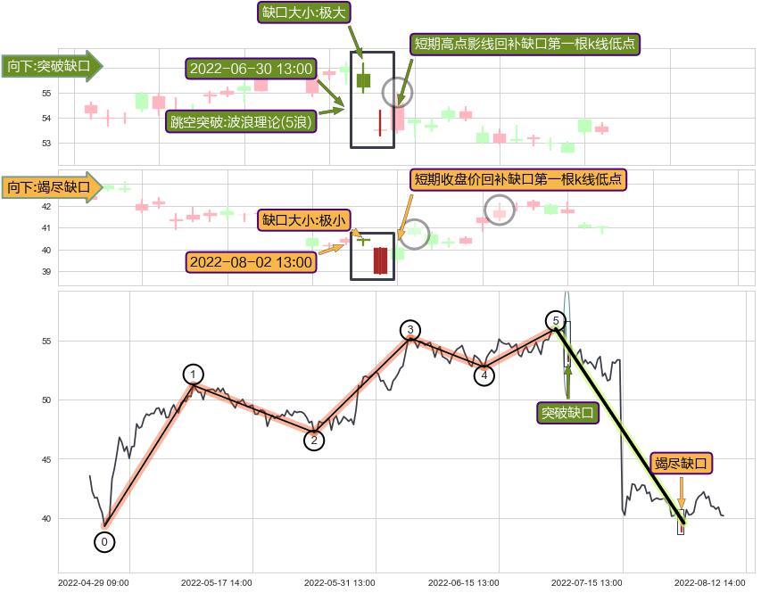 ➢ 2022-08-02 13:00形成:向下跳空【竭尽】缺口