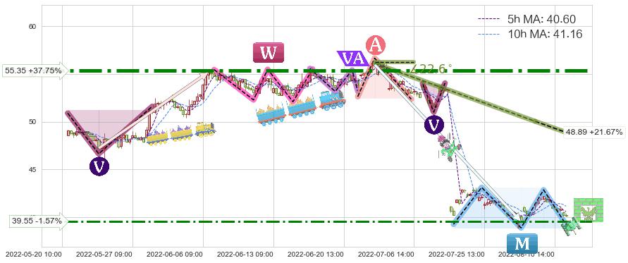 ♘ 阻力价格位39.55,可信任强度55.60%,距离最后交易2022-08-12 14:00形成的收盘价格40.18相差 -1.57%